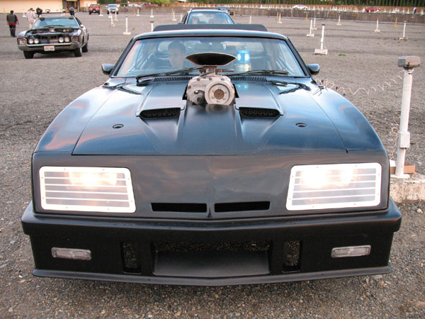 2) Following the Car show, A "Tanker Run" Cruse, began at the LeMay Museum, Lead by A "Tanker Rig", followed by all those awesome Mad Max Vehicles, and TV/Film Cars, in homage to the Tanker Scene from "Mad Max 2/The Roadwarrior". The local Gyrocopter club was planning on Flying overhead in up to 6 gyroplanes. Unfortunately due to late afternoon rains and related FAA regulations they were gounded, but we'll call on them again. 3)The "Convoy" ended at the Valley 6 Drive-In, for a spectacular giant screen double feature of the Australian releases of Mad Max & Mad Max 2 [known as the RoadWarrior in its usual US release]. We believe this was the First time in US history that both Mad Max 1 & Mad Max 2 were shown on the big screen, and certianly the fisrt time in a Drive-In with Replica cars, and Cast in attendance!